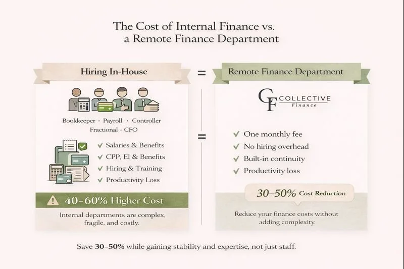 Collective Finance provides a remote finance department for Canadian organizations, delivering the same operational coverage as an in-house team while reducing total cost, risk, and complexity.